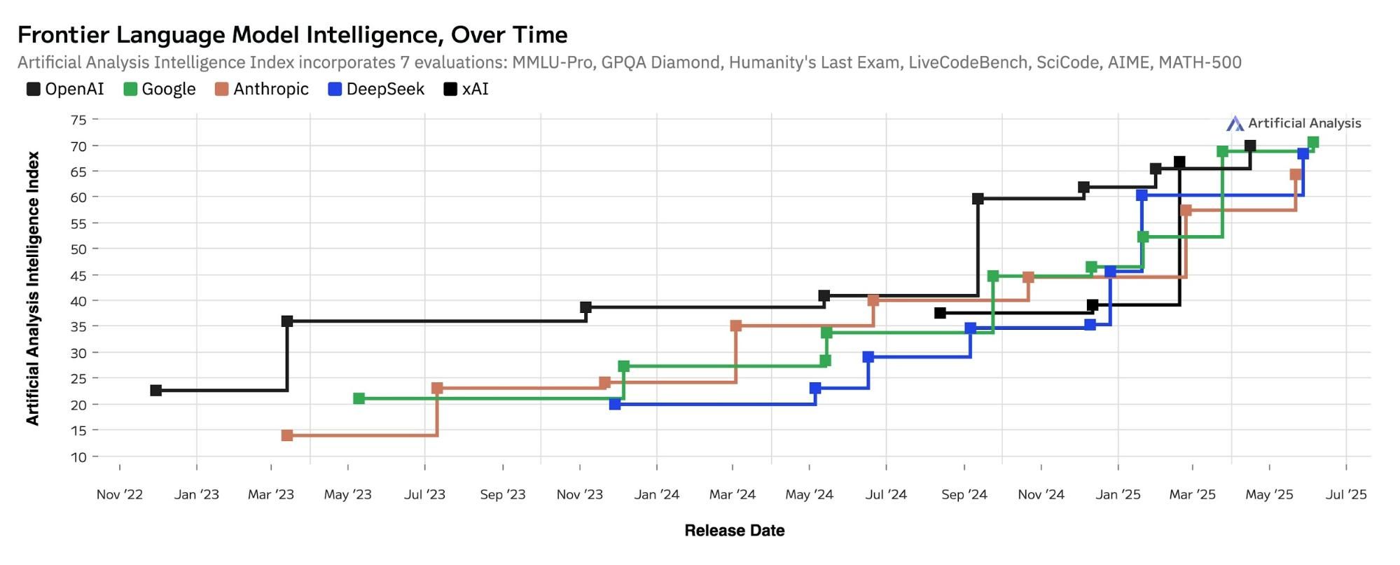 Language models: Google's updated Gemini 2.5 Pro now leads the AI intelligence frontier, matching OpenAI's o3 in our independent benchmarks