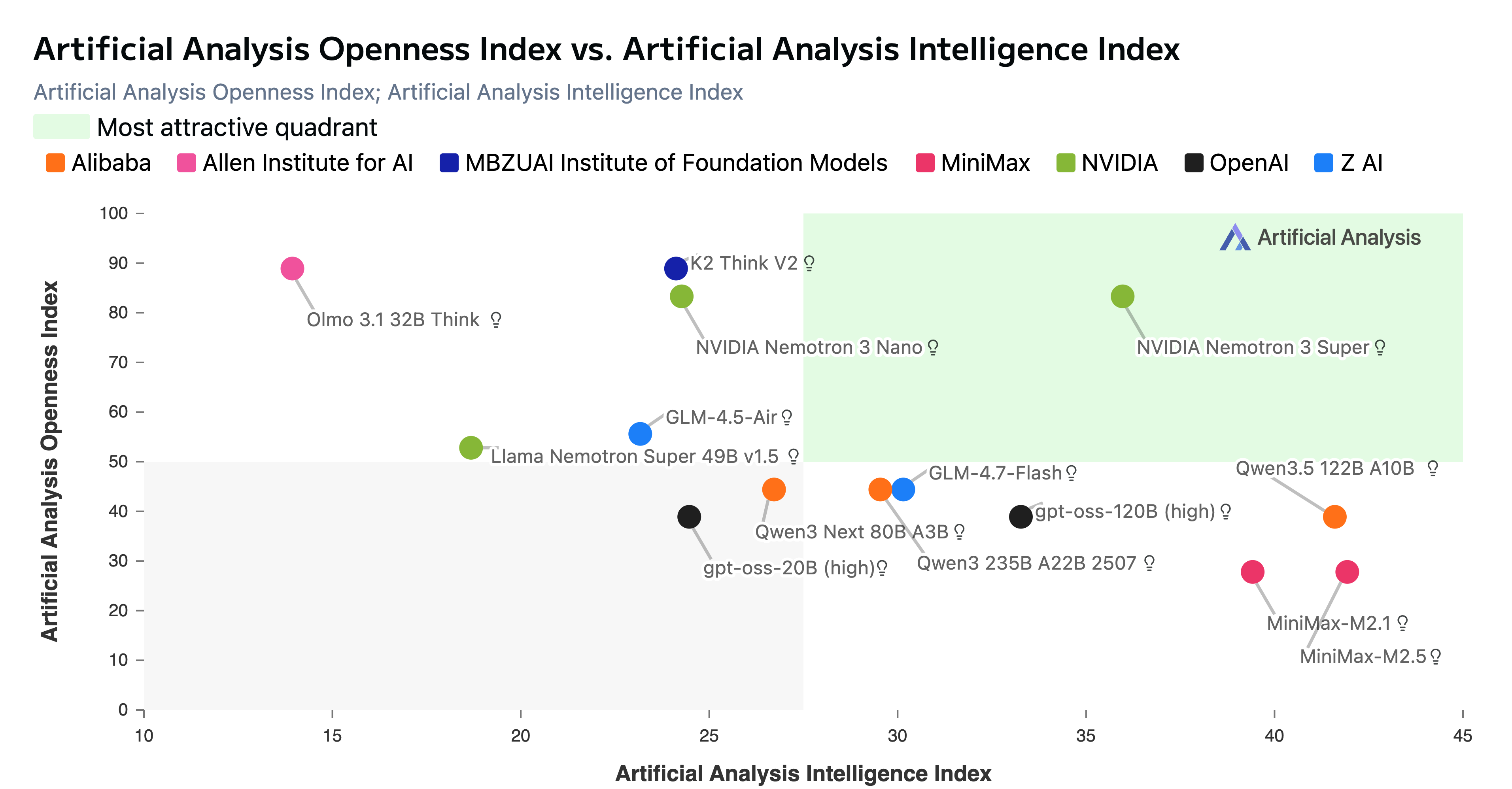 Artificial Analysis Openness Index vs. Artificial Analysis Intelligence Index