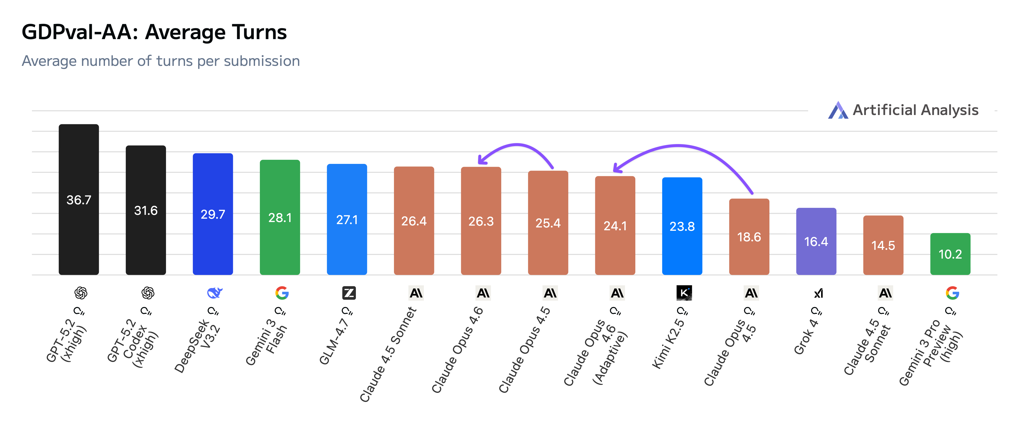 Claude Opus 4.6 uses more turns per task than Opus 4.5, reflecting its iterative approach to checking and refining its work