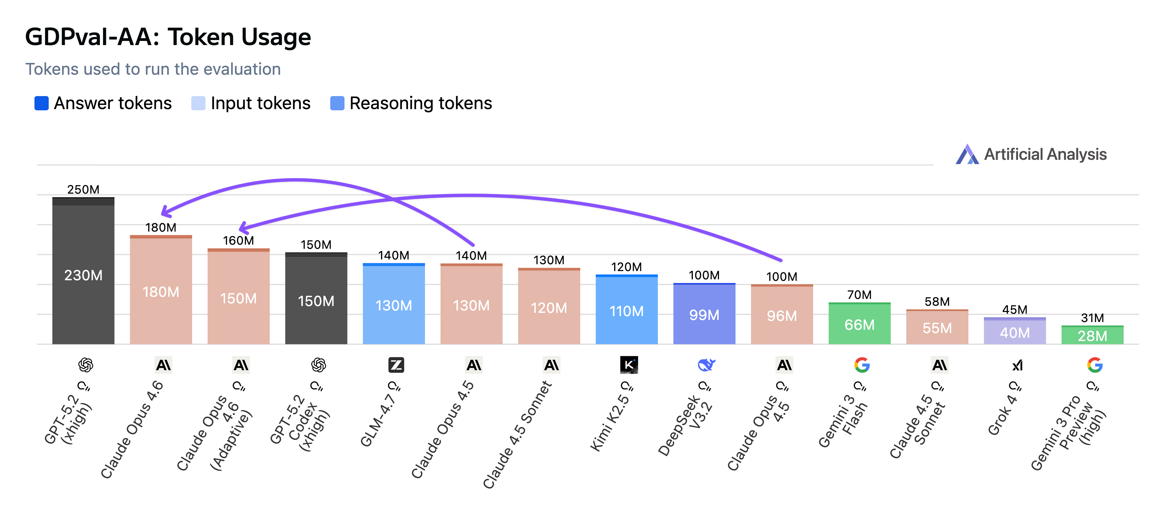 Claude Opus 4.6 used 30–60% more tokens than Opus 4.5, but still far fewer than GPT-5.2 (xhigh)