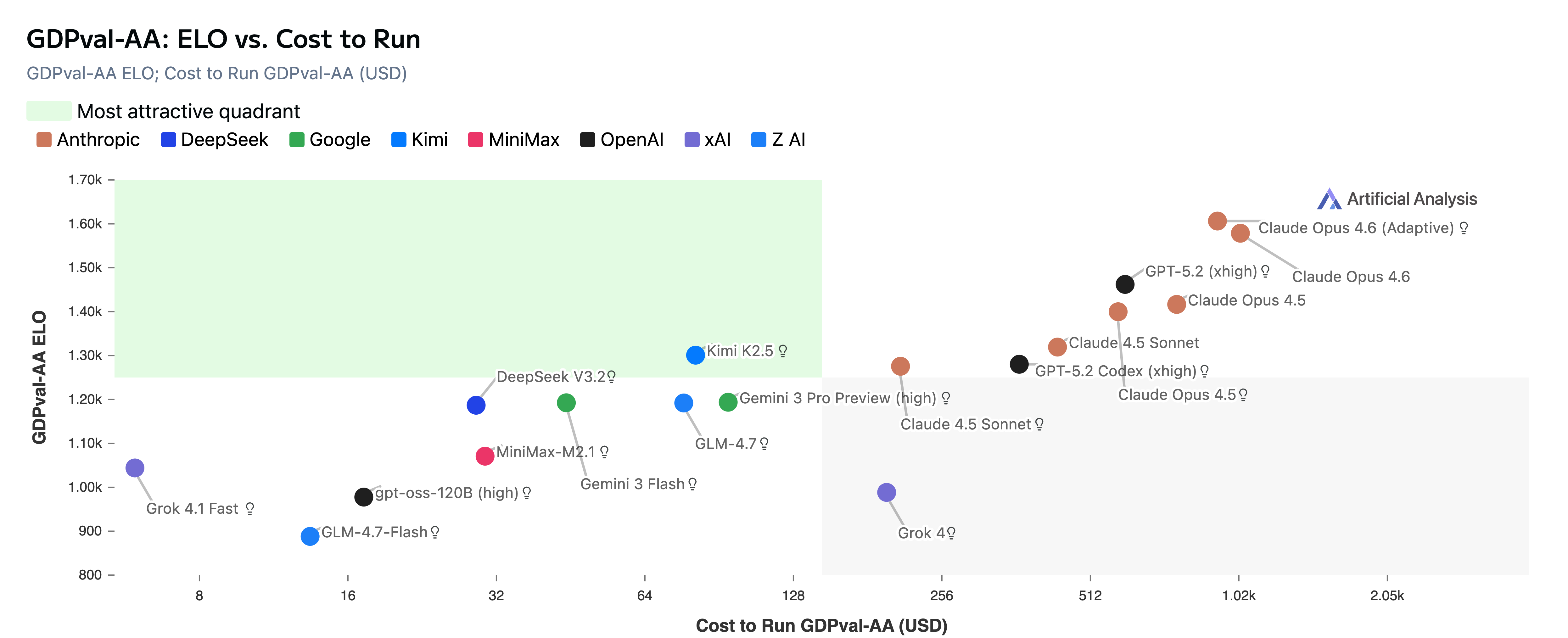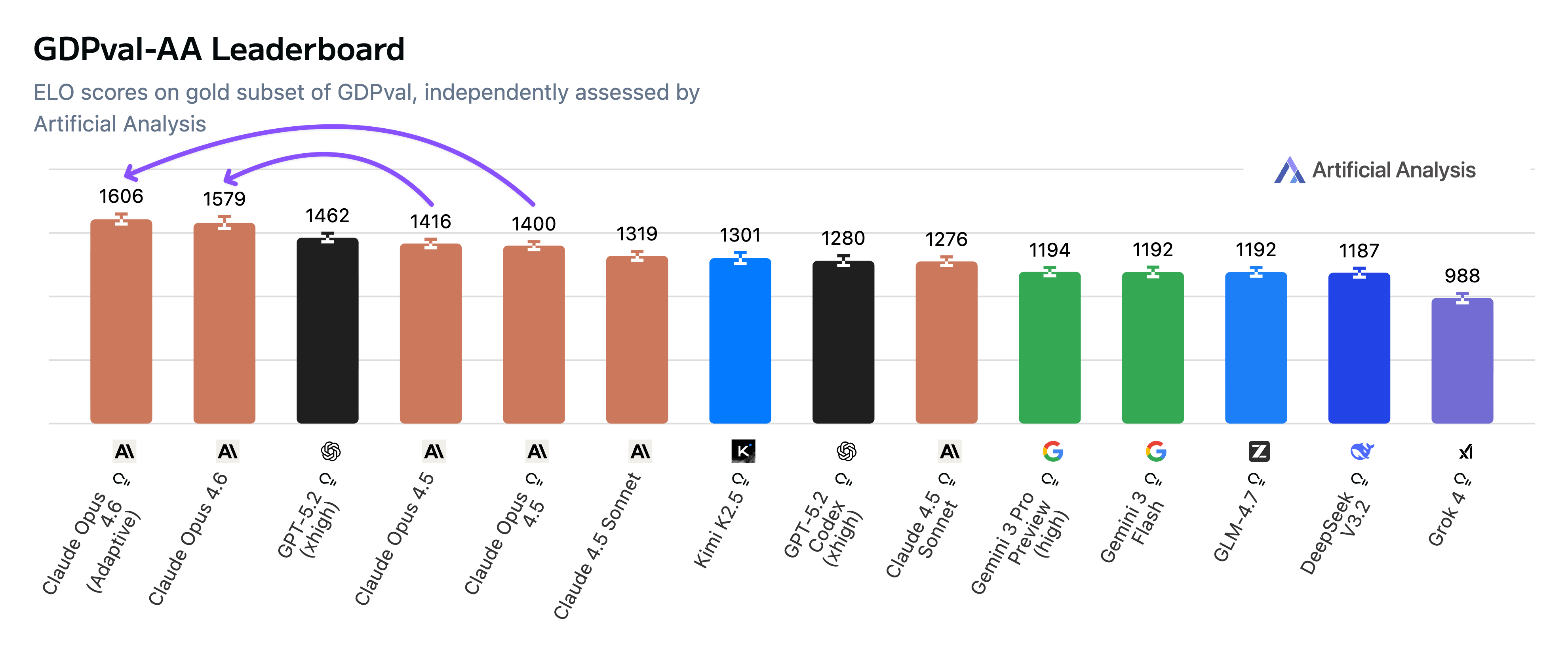 We worked with Anthropic to benchmark Claude Opus 4.6 ahead of launch — it reached an Elo of 1606 with adaptive thinking, nearly 150 points ahead of GPT-5.2 (xhigh). This implies a win rate of ~70% when compared head-to-head with OpenAI's December 2025 flagship.