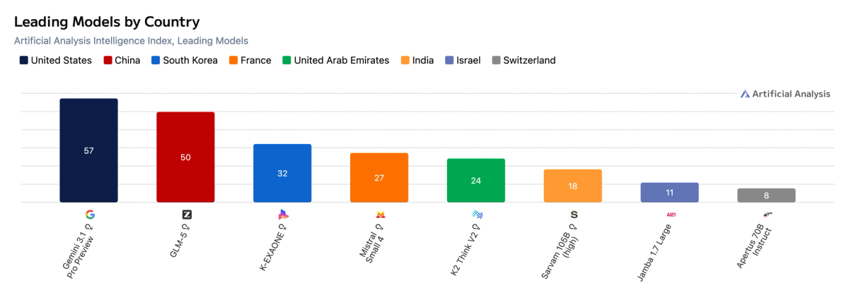 While the USA and China lead with the intelligence and selection of language models, the number of models from other countries is increasing